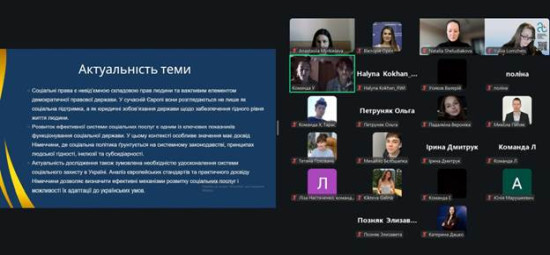 У межах конкурсу учасниці підготували науково-аналітичне есе та презентацію на тему «Європейські стандарти прав людини у сфері соціальних послуг: досвід Німеччини», у якій розкрили сучасні підходи до забезпечення соціальних прав, механізми контролю за дотриманням європейських стандартів та можливості імплементації такого досвіду в Україні. Особливу увагу було приділено ролі соціальної держави, принципу людської гідності та ефективному функціонуванню системи соціальних послуг.