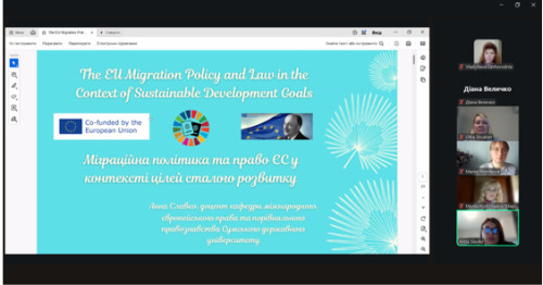 Була представлена презентація проєкту «Стандарти ЄС у сфері свободи вираження поглядів та інформації» (координаторка проєкту Владислава Завгородня, виконавці проєкту Анна Славко, Ольга Швагер, Марія Плотнікова, Тетяна Чурилова, Сергій Дегтярьов, Матеуш Каміонка, Віта Гордієнко). Обговорювалися проблеми дотримання стандартів ЄС у сфері свободи вираження поглядів та інформації в умовах воєнного стану –моральна, політична, військова, безпекова та правова дилема, Сергій Бондаренко, кандидат політичних наук, доцент кафедри журналістики та соціальних комунікацій Донецького національного університету імені Василя Стуса (м. Вінниця) та демонстарція презентації результатів проєкту «Міграційна політика та право ЄС в контексті цілей сталого розвитку» (координаторка проєкту Анна Славко, виконавці проєкту Владислава Завгородня, Ольга Швагер, Анатолій Гончаренко.
