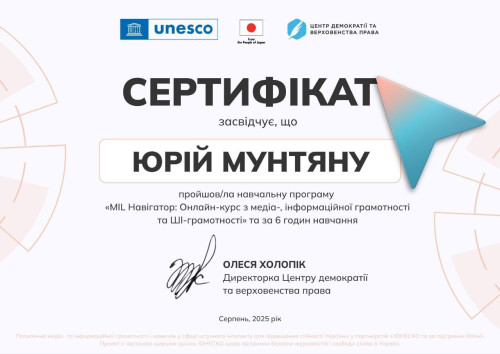 Під час лекцій наші здобувачі дізналися багато нового. Зокрема в епоху розвитку штучного інтелекту необхідно мати навички які допомагають розрізняти фейкові новини/фото/відео від реальних. Досить часто зустрічаються випадки коли люди шукають юридичної допомоги і звертаються до штучного інтелекту. Проте, його відповіді не завжди можуть бути точними та дійсними. Майбутнім юристам у сучасному світі необхідно розуміти як працює штучний інтелект, медіа-простір та вміти працювати з ними. Тому Діана, Єлизавета та Юрій долучилися до цього курсу. В результаті проходження навчальної програми «MIL Навігатор: онлайн-курс з медіа-, інформаційної та ШІ-грамотності» наші здобувачі тепер знають ознаки генерації фото/відео штучним інтелектом, як згенеровані новини/тексти/картинки впливають на поведінку/почуття/думки людей, які інструменти та методи допомагають перевіряти інформацію, зображення та відео, як безпечно використовувати можливості генеративного штучного інтелекту. «Проходження навчальної програми «MIL Навігатор: онлайн-курс з медіа-, інформаційної та ШІ-грамотності» не просто допомогло мені отримати нові знання та навички, це також надихнуло мене. На мою думку ця тема назвичайно актуальна. Зараз все більше і більше з’являється нових програм, розвивається штучний інтелект і ми повинні вміти взаємодіяти з цим. Штучний інтелект недосконалий тому інформацію отриману з його джерел необхідно перевіряти. Штучний інтелект може нашкодити – росіяни масово використовують діп-фейки аби вплинути на українців і схилити їх на свій бік. Про це ми також говорили в межах онлайн-курсу і експерти наводили нам приклади. Насправді контент згенерований штучним інтелектом неабияк впливає на нашу підсвідомість, тому ми повинні відрізняти вигадку від реальності. І я дуже вдячна організаторам за можливість взяти участь у цьому онлайн-курсі, вдячна за нову інформацію яка неодмінно стане мені у пригоді протягом життя!» - Вісич Єлизавета, здобувачка вищої освіти спецільності 081 «Право» «MIL Навігатор: онлайн-курс з медіа-, інформаційної та ШІ-грамотності – це справжній цифровий «навігатор» у світі інформації та ШІ. Кожен день був насичений актуальною теорією, практичними прикладами і чіткою логікою побудови знань. Лектори – це чудові фахівці, які не просто читають лекції, а діляться досвідом і надихають. Програма допомогла зрозуміти, як формуються наші думки, як працюють алгоритми і що таке фейки. Особливо цінним було навчання відповідального ставлення до ШІ. Курс був динамічним, насиченим, виокремлювався саме практичною користю» – Величко Діана, здобувачка вищої освіти спеціальності 081 «Право». Здобувачі вищої освіти спеціальності 081 «Право» - Величко Діана, Вісич Єлизавета, Мунтяну Юрій НАВЧАННЯ У ШКОЛІ ПОЛЬСЬКОГО ТА ЄВРОПЕЙСЬКОГО ПРАВА ЗАКІНЧИЛОСЯУ 2024 році Юридичний факультет Львівського національного університету імені Івана Франка спільно з Факультетом права і адміністрації Ягеллонського університету у Кракові оголосили 17-й набір до Школи Польського та Європейського права (Школа). Здобувачі 2 та 3 курсу першого (бакалаврського) рівня вищої освіти спеціальності 081 «Право» - Величко Діана, Вісич Єлизавета та Ковальов Михайло пройшли конкурсний відбір на навчання у Школі. Програма школи складалася з двох змістових модулів, які завершува
