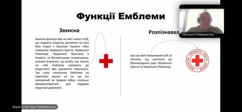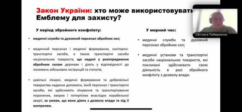 - Світлана Побережник — провідна фахівчиня з міжнародного гуманітарного права Відділу МГП НК ТЧХУ, тренерка з МГП та прав людини.